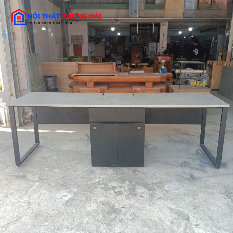 Bàn Chân Sắt 2m3 Mặt Gỗ MDF Có Hộc