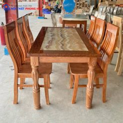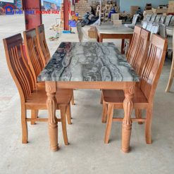 Bộ Bàn Ăn Mặt Đá Chân Tiện Gỗ Sồi Sang Trọng
