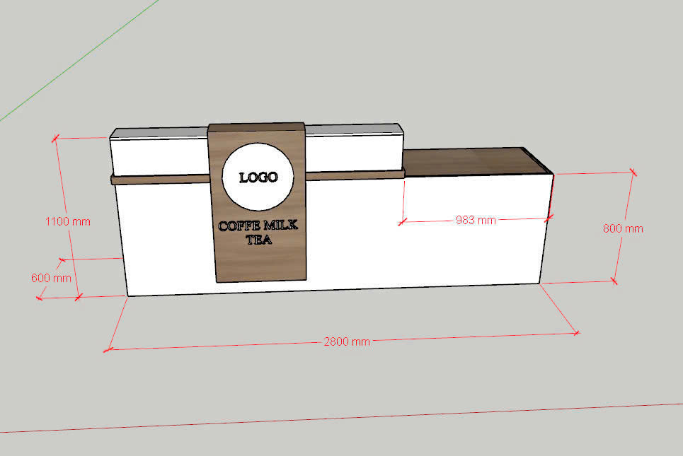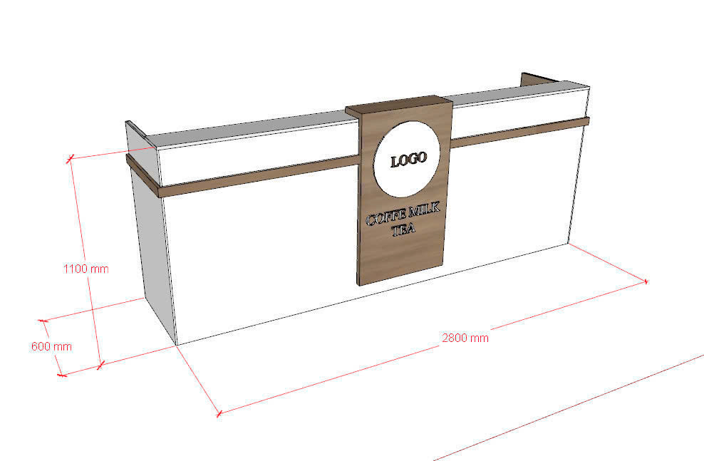 Quầy sở hữu phong cách thiết kế cân đối, đơn giản nhưng cực kỳ tinh tế. Phần trung tâm được bố trí panel gỗ nổi bật, là nơi lý tưởng để gắn logo doanh nghiệp hoặc slogan thương hiệu – điểm nhấn ấn tượng ngay khi khách bước vào.