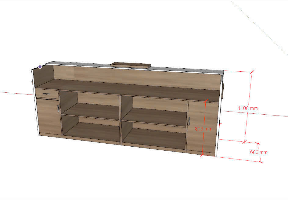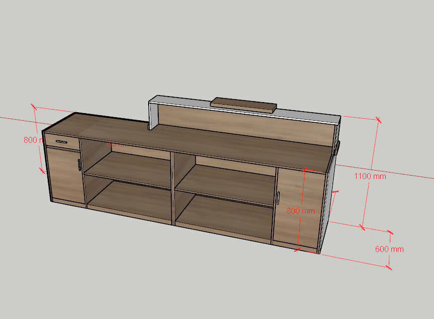 Với chiều dài lên tới 2.8 mét, quầy cho phép bố trí đầy đủ vật dụng như máy tính, điện thoại, tài liệu… Có thể bổ sung thêm ngăn kéo, hộc tủ hoặc kệ bên trong để tăng công năng sử dụng.