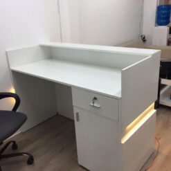 Quầy lễ tân hiện đại là nơi tiếp đón khách hàng và tạo ấn tượng đầu tiên cho doanh nghiệp. Mẫu quầy trong ảnh mang phong cách tối giản, phù hợp với nhiều không gian như văn phòng, showroom, spa hay thẩm mỹ viện. Đây không chỉ là món nội thất phục vụ chức năng, mà còn là điểm nhấn thể hiện phong cách chuyên nghiệp của doanh nghiệp.