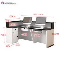 - Mô tả: mẫu quầy lễ lễ tân mini với kiểu dáng nhỏ gọn giúp tiết kiệm diện tích. Mặt ngoài thiết kế đơn giản, mặt trong còn có thêm tủ để tài liệu thuận tiện trong quá trình sử dụng. Sản phẩm thích hợp làm quầy lễ tân quầy tính tiền tại các tiệm Spa, Nail, …